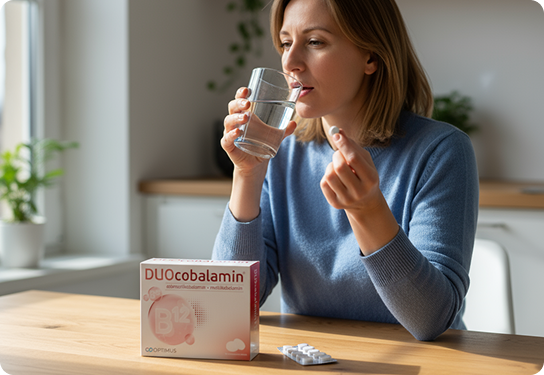 Sadrži dva aktivna oblika vitamina B12 adenozilkobalamin i metilkobalamin u idealnom odnosu 1:1.